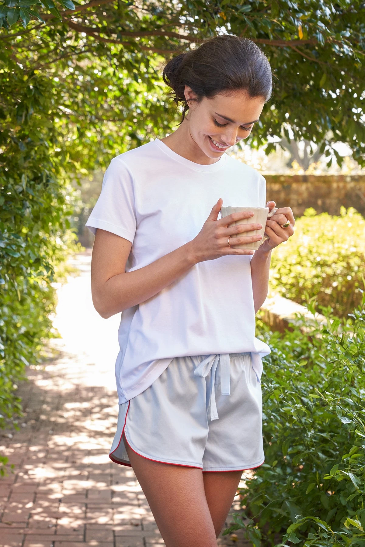 The Boxer in Americana, a barely there blue with classic red piping, is a flattering and feminine take on the traditional boxer short. The ultra-comfortable piece is an instant staple that features an elastic waistband and a special bow detail. No need to borrow his anymore, we’ve got you covered. Made of 100% cotton poplin.