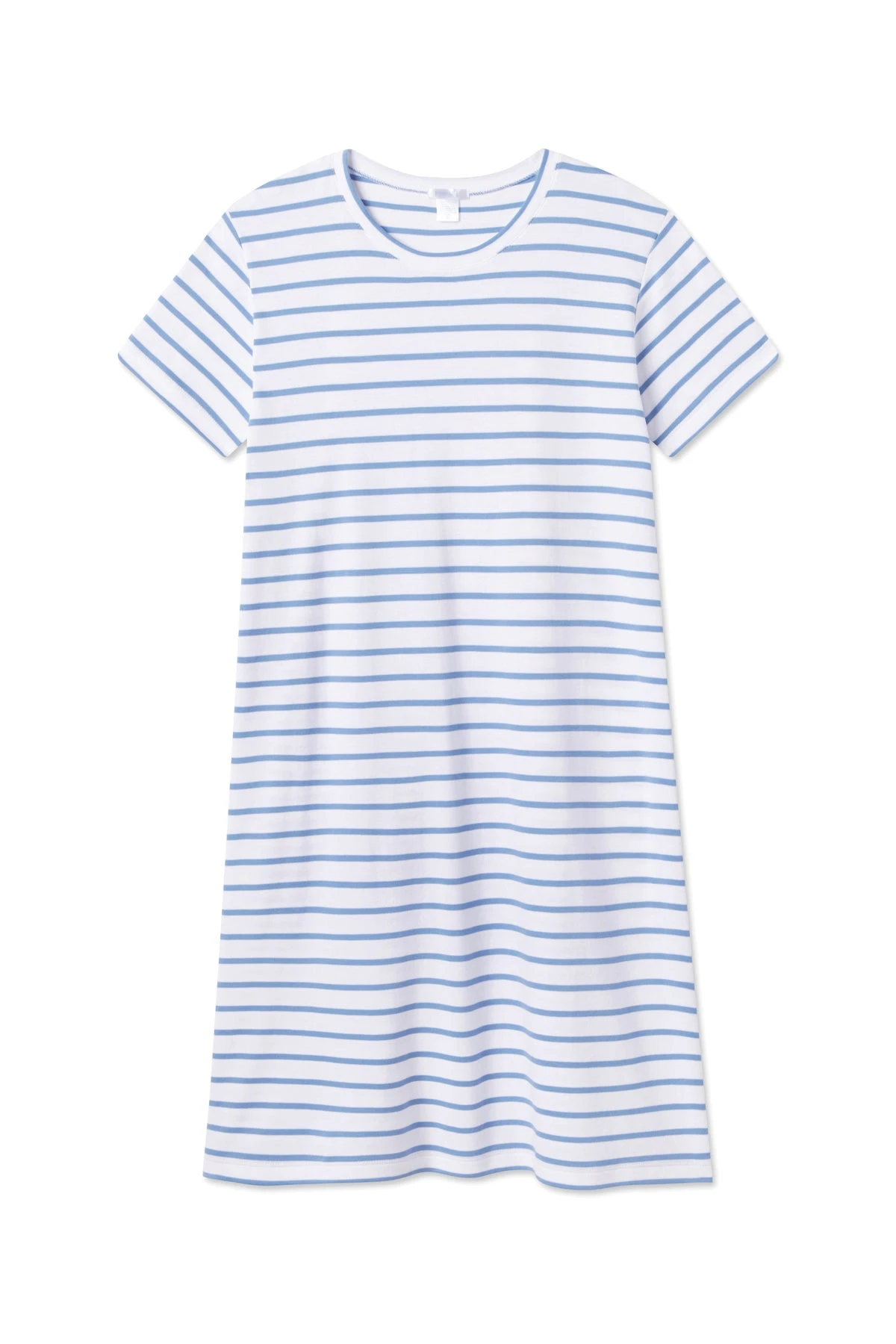 Our Weekend Nightgown in Bistro, a soft, mid-toned blue stripe set on white, is a timeless must-have. It features a crewneck and fitted silhouette. Made from 100% Pima cotton.