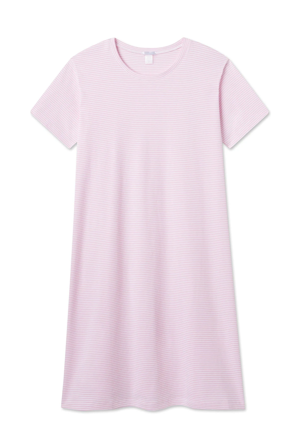 Our Weekend Nightgown in Lily, a pale pink and white stripe, is a timeless must-have. It features a crewneck and fitted silhouette. Made from 100% Pima cotton.